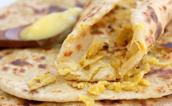 In Maharashtra on Makar Sankranti (मकर संक्रान्ति) day people exchange multicoloured halwa (sugar granules coated in sugar syrup) and til-gul laadoo (sweetmeats made from sesame seeds and jaggery). Gulachi poli/puran poli (गुळाची पोळी / पुरण पोळी) (flat bread stuffed with soft/shredded jaggery mixed with toasted, ground til [white sesame seeds]) and some gram flour, which has been toasted to golden in pure ghee, are offered for lunch. While exchanging til-gul as tokens of goodwill people greet each other with the words